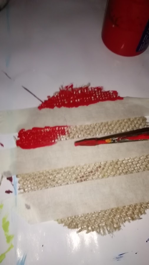 Con la cinta adhesiva de papel he hecho divisiones, franjas, que las he pintado de rojo.