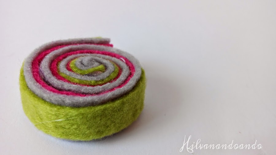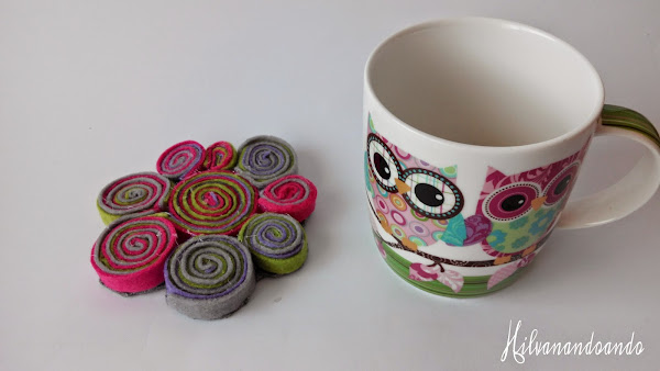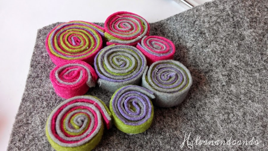 6._ Una vez hechos, pégalos sobre una base de fieltro y recorta el sobrante.