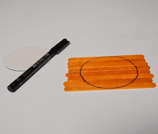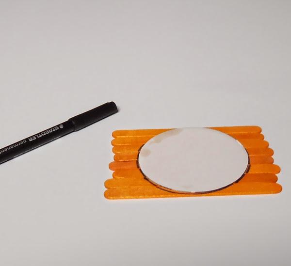 Pongo el círculo de cartón, encima de unos cuantos palitos,