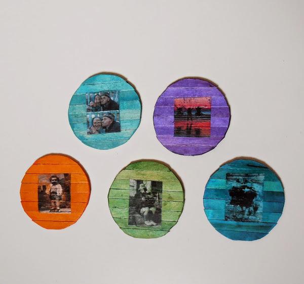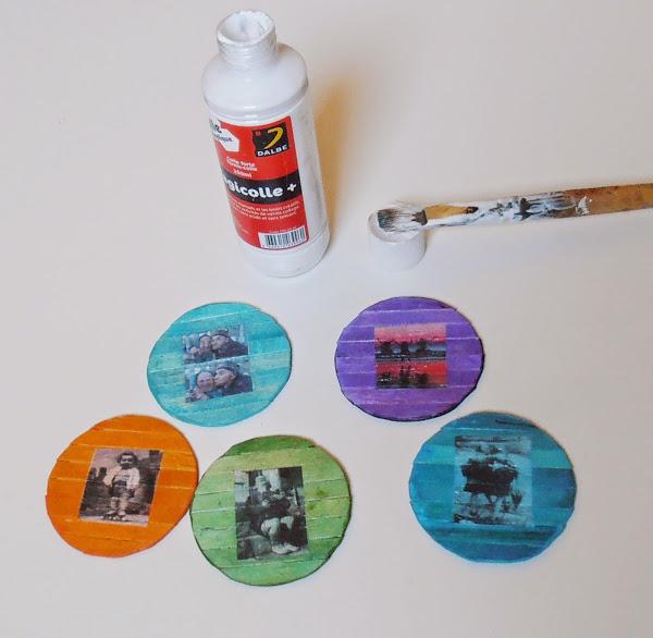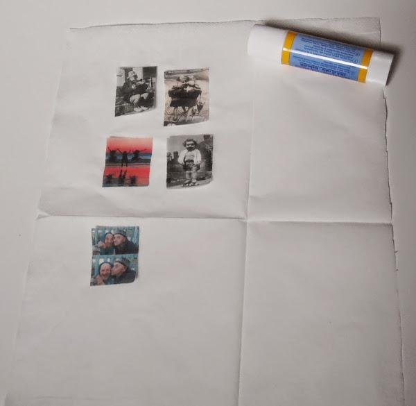 Recorté las mini fotos, y con la cola-barniz que suelo utilizar