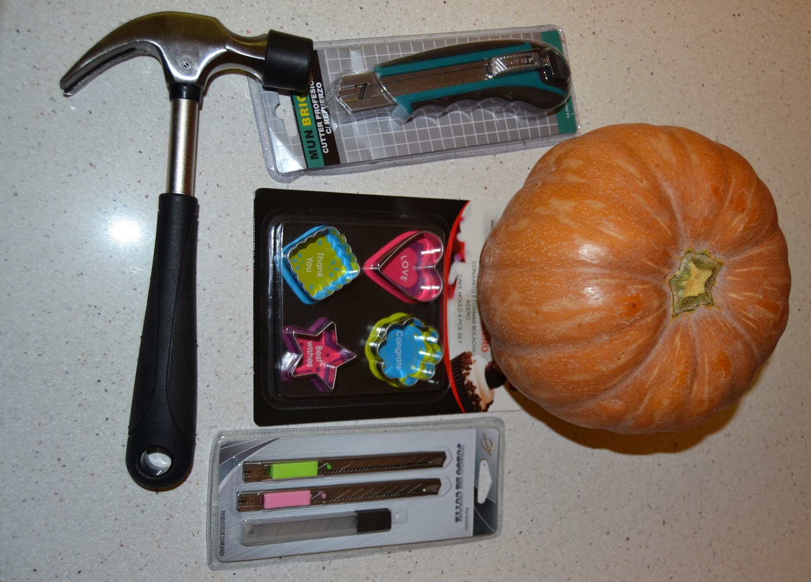 4. Esta parte es la de la parte facilonga para los que no son tan hábiles. Con los moldes que hemos comprado en el chino hacemos los ojos para que nos queden chupipirulis. Una sorpresa que me llevé, es que, ingenua de mí, las calabazas eran más blanditas (juajuajuajua---espacio para más risas). Ahora entenderéis lo del martillo. Hay que clavarla, sí. Cuidado con los dedos.