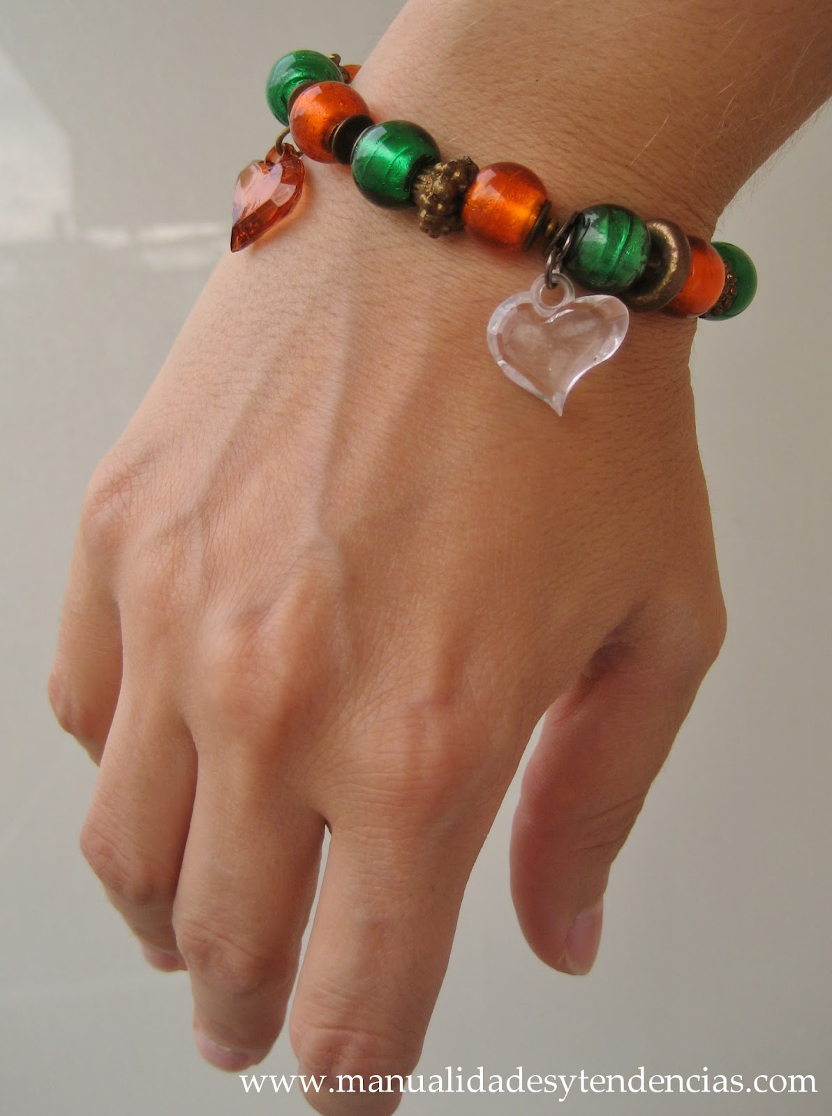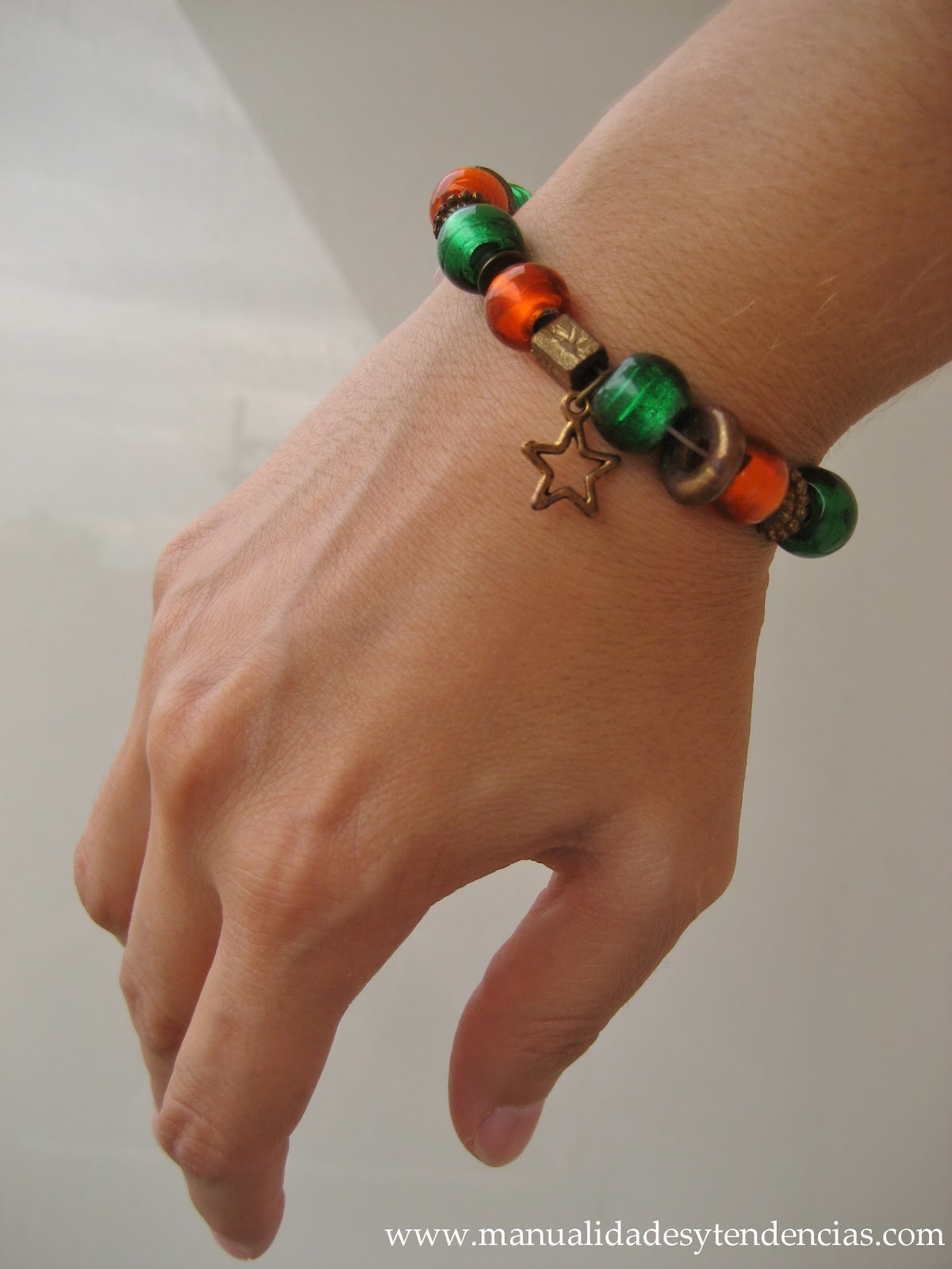 Bonjour! L"automne est arrivé et j"ai voulu faire un bracelet charms dans les tons orange et vert, très typiques de cette période de l"année.