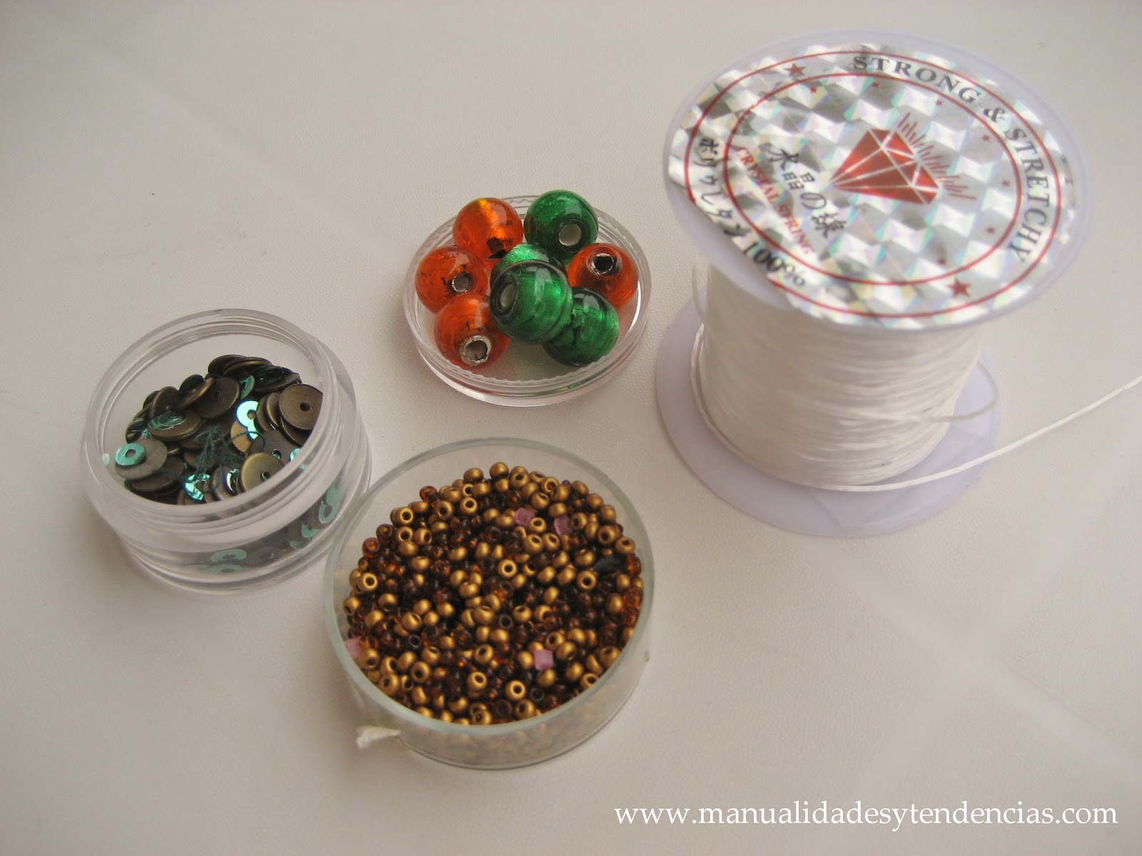 Hello everyone! Fall is already here and I wanted to make a beaded charm bracelet on fall colors, green and orange.