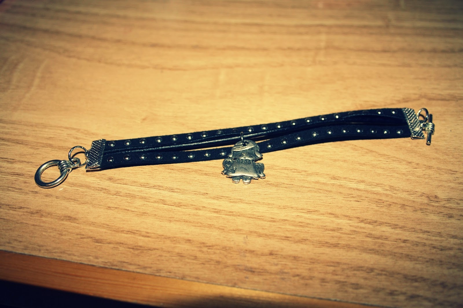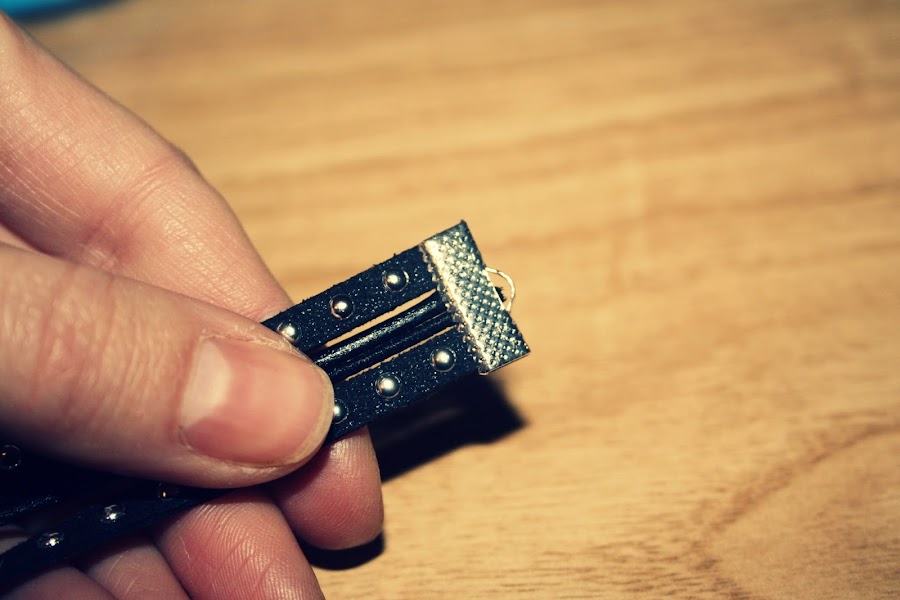 un cordón doble con tachuelas de color negro (medir vuestra muñeca y sabréis cuanto necesitaremos)