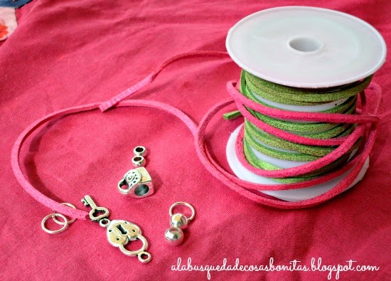 - Cordón con textura de cuero, unos cuarenta centímetros (mejor que sobre, que siempre podemos cortar)