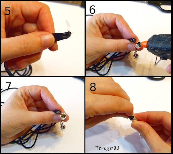 Pasos 6 y 7: Colocamos un poco de silicona dentro del cierre (cuidado de no quemarnos porque el cierre va a conducir el calor del pegamento).