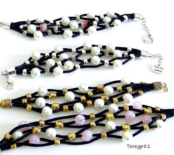 Las piezas de strass que veis en le primera pulsera de abajo las he recibido de una tienda de abalorios online. Aquí os dejo el enlace al haul donde veréis todas las piezas que he recibido.