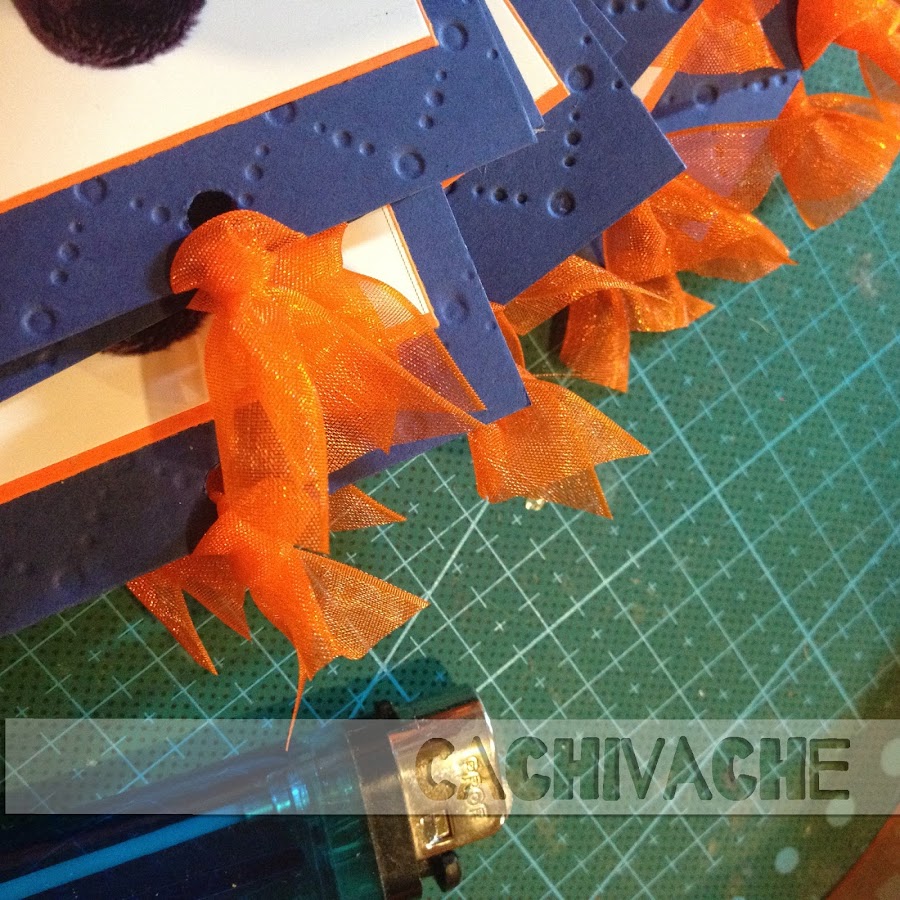 Hice el agujero y até la cinta de organza!!!...