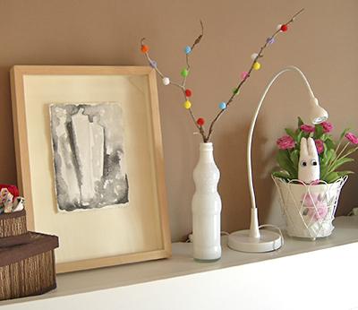 ¡¡Y listo!! Ya puedes utilizar las ramitas como quieras. Yo las he usado para ponerlas en mis botellas pintadas de colores y para hacer un centro de mesa y decorar una mesita auxiliar, pintando las ramas de negro y utilizando bolitas en tonos marrones.