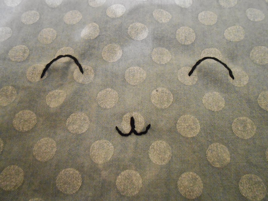 Para que nuestro cojín sea simétrico, quizá tenéis que hacer algunas modificaciones para que haya la misma distancia de los ojos a los extremos, y de los ojos y a boca a las partes de arriba y abajo respectivamente. Medimos y cortamos si es necesario.