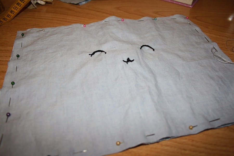 A continuación cortamos la tela. Como la tenemos al derecho, precederemos a bordar (os podéis ayudar de un dibujo y así poder ir bordando fácilmente).
