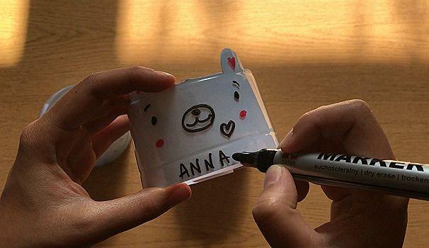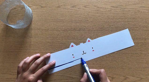 Cuando tengas la cartulina, puedes dibujar en ella el diseño del animalito, o dejarla en blanco para dibujar al animalito en la botella. De nuevo, si utilizas marcadores de pizarra, puedes borrar y dibujar tantas veces como quieras, y darle distintas expresiones o colores.