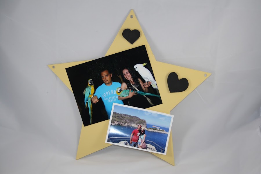 Yo escogí unas fotos que tenía por casa para decorar mi estrella y creo que ha sido todo un acierto. Además, le añadí unas letras hechas con goma eva y también las pegué con la misma cinta.