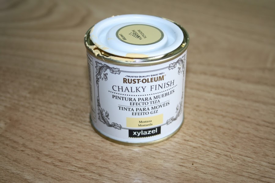 Así que las pinté con chalk paint Xylacel. Primero de un color azul cielo, luego de otro encima de mostaza manchándolo (es decir, dando brochazos pero sin llegar a cubrir la totalidad de la pintura anterior).
