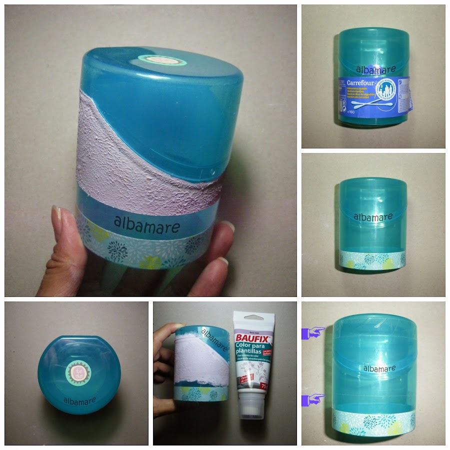 En esta ocasión vamos a reciclar un bote de bastoncillos de algodón de una manera muy simple pero muy resultona.