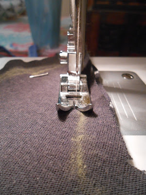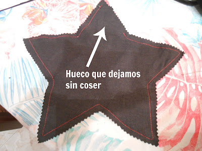 Marcamos con alfileres y luego cosemos con la máquina alrededor exceptuando un pequeño hueco de 6 o 7 centímetros.