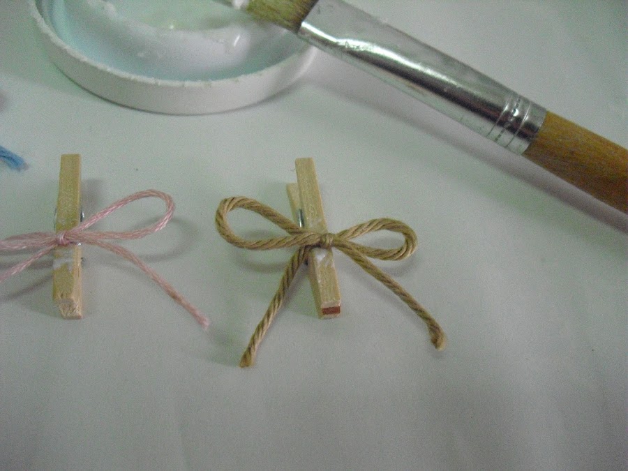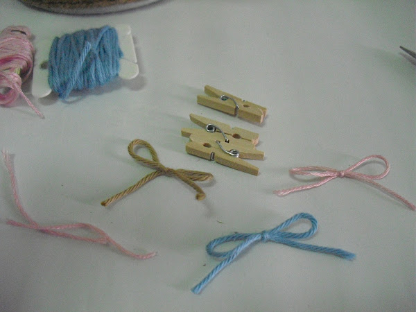 Ahora le toca a las pincitas, tan adorables ellas, yo decidí añadir un lacito a cada una en unos tonos que creo que le iban bien, se puede hacer con raso de toda la vida o puntillitas, eso ya cada una...