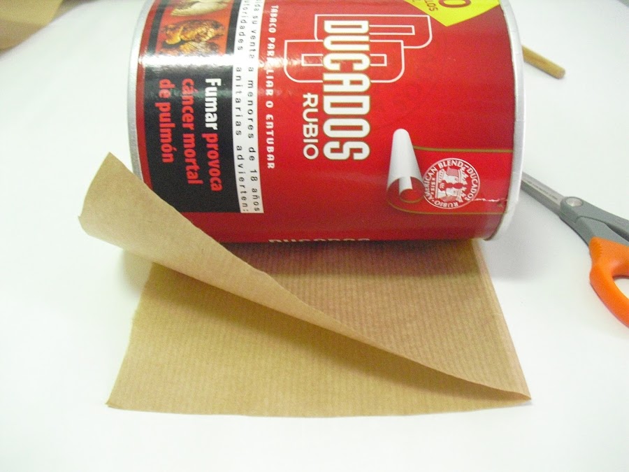 Lo primero que haremos será cortar el papel a la medida que necesitemos para cubrir todo el bote (en mi caso lo necesito doble para que no transparente el dibujo del bote), yo respetaré la orilla...