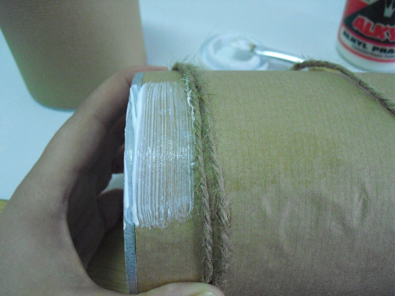Ponemos un poco de cola en la orilla y pasamos un par de vueltas de cuerda...