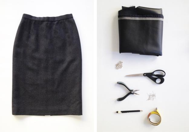 Anna nos enseña a reciclar ropa con su super idea con retales de Piel y tachuelas para transformar una falda básica y convertirla en una super falda ACTUAL .