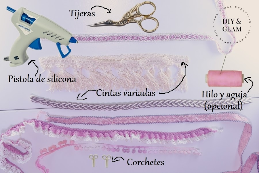 Por último pegar una tira trenzada y la misma tira de pasamanería que hemos pegado en la tira.