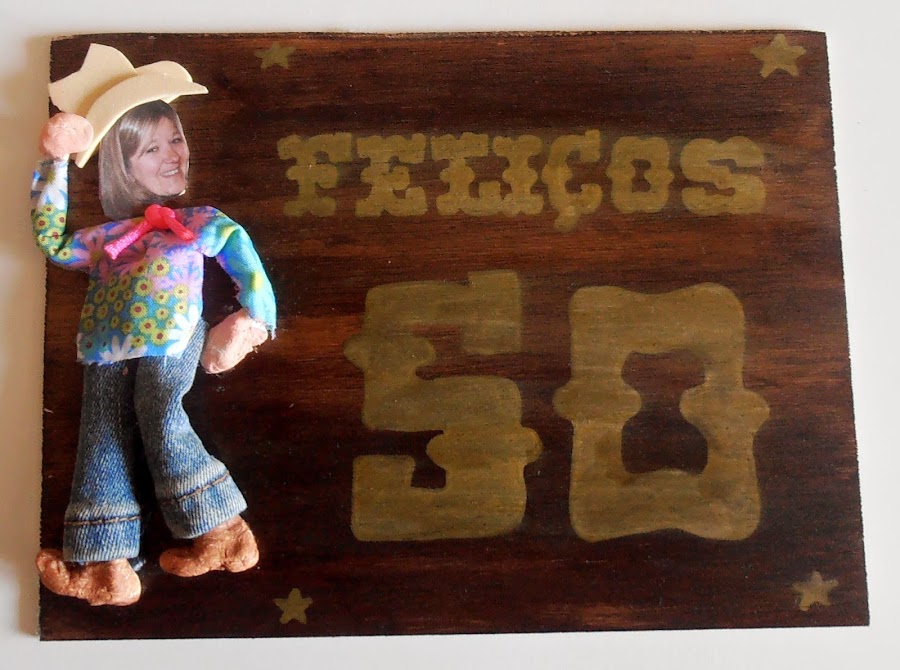 y encima los retales de tela, y las letras y números, con rotulador dorado.