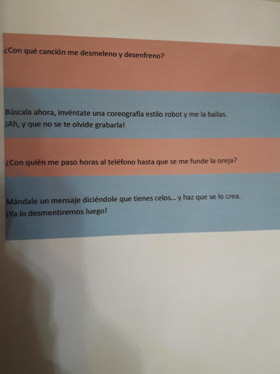 Las preguntas os las dejo a vuestra imaginación, desde el número de pie, el color, el plato favorito… Y las pruebas cuanto más divertidas mejor