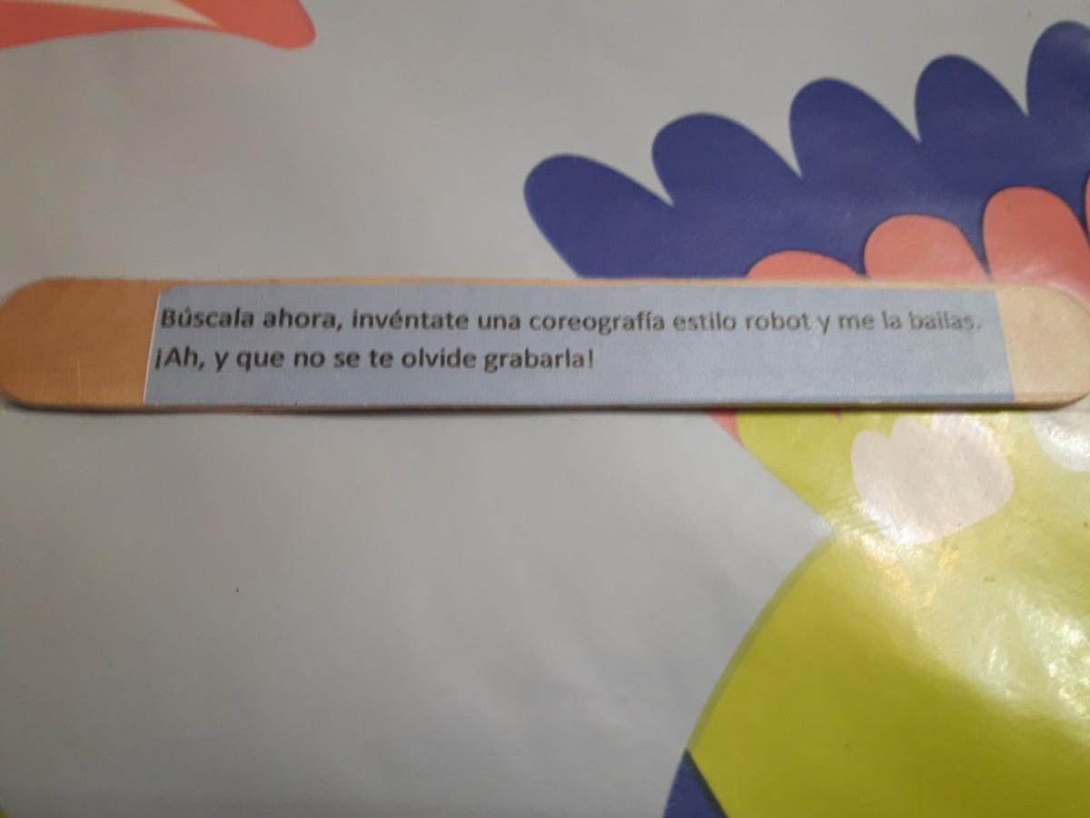 El juego consiste en tener muchos palitos con preguntas en el anverso y en el reverso las pruebas a realizar si no se contestan correctamente.