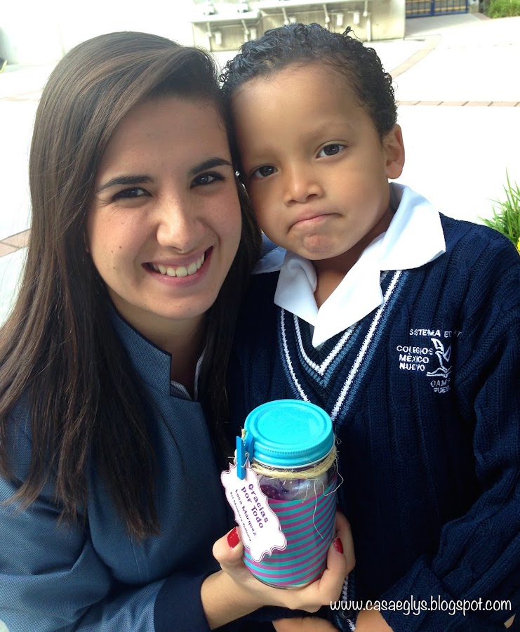 Luca con una de sus maestras haciendo entrega de su regalito!