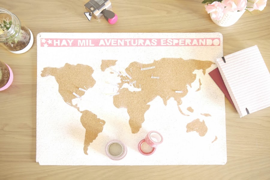 Para los viajeros de la familia, qué te parece un mapamundi en corcho para que vayan marcando sus mil y una aventuras? Es súper sencillo de hacer y hace mucha ilusión ir marcando los sitios que ya has visitado y los lugares a los que te gustaría ir. Es una buena idea si quieres regalar a alguien un viaje y se lo quieres decir de forma original | Aprende a hacerlo aquí