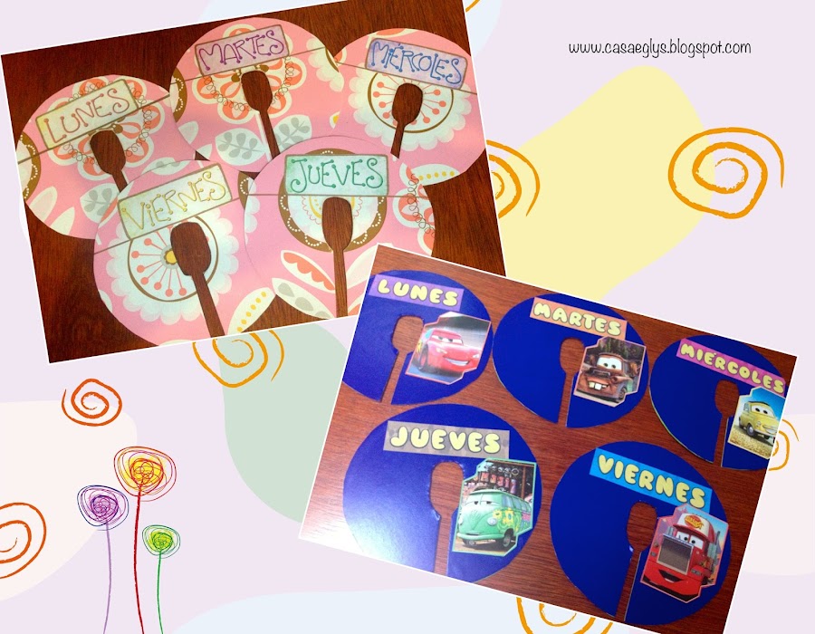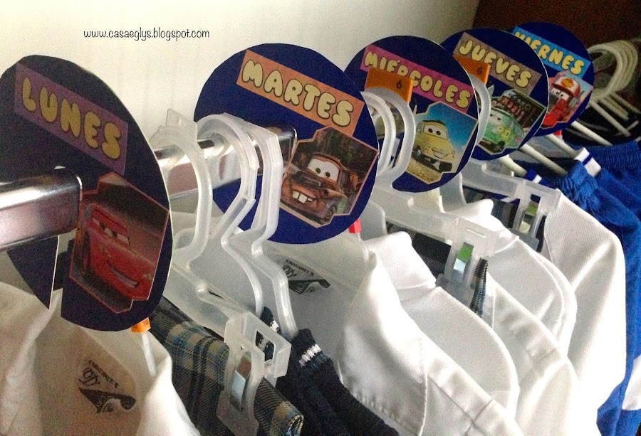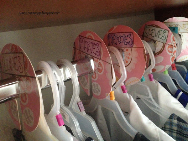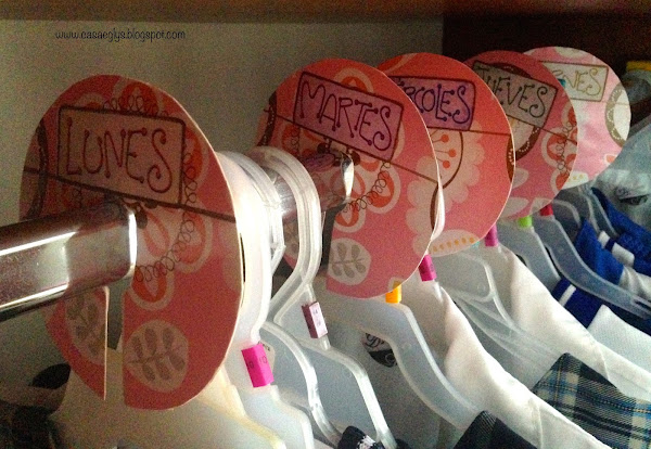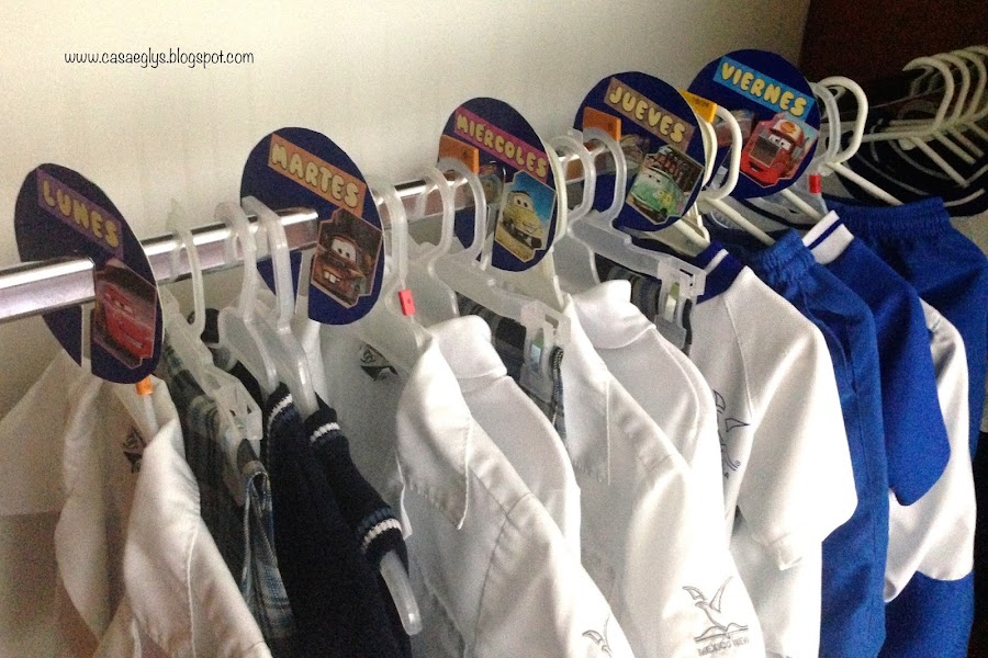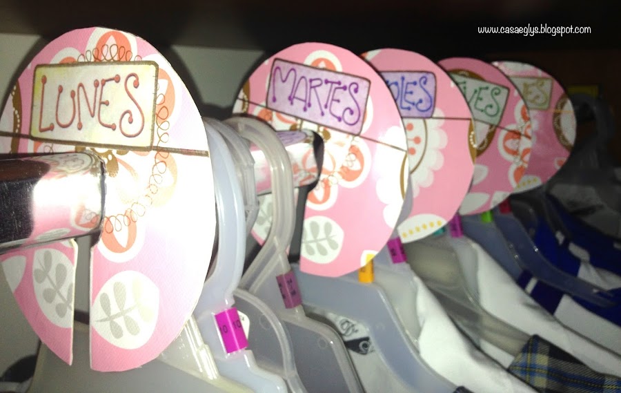 Una manera de mantener organizado los uniformes de los hijos y en cierta forma responsabilizarlos a saber que le corresponde usar cada día de la semana es elaborando unos lindos separadores y etiquetas para clasificar la ropa de cada día.