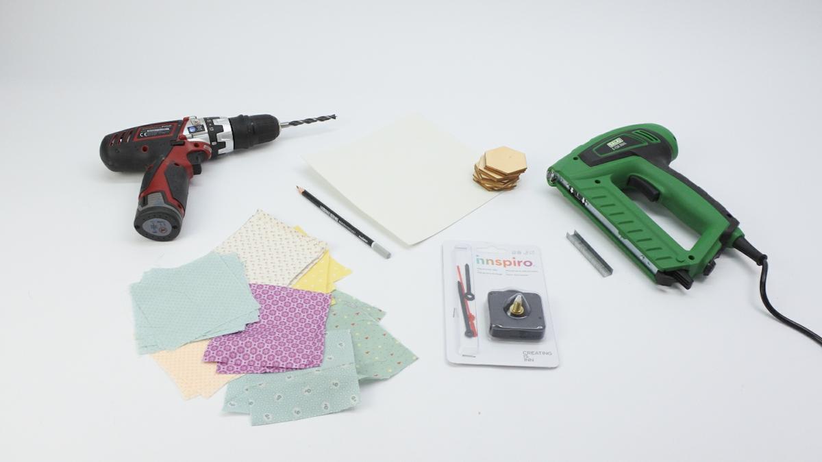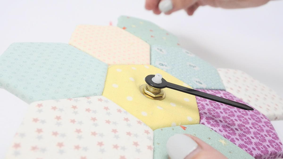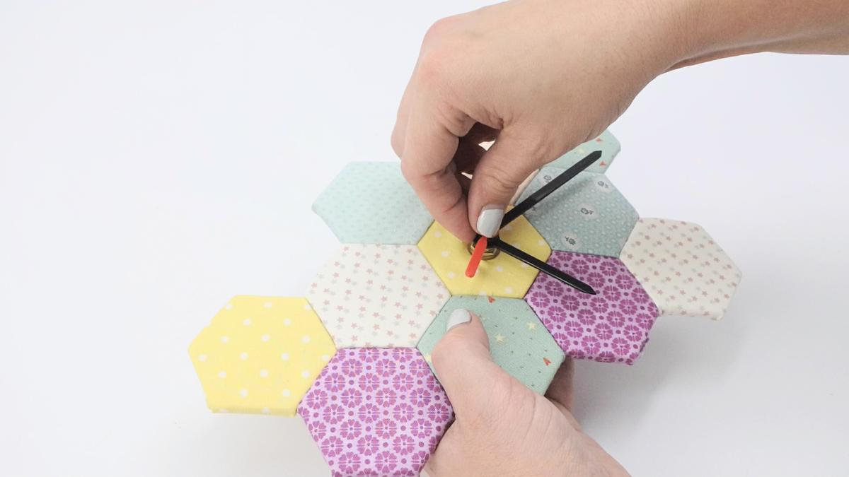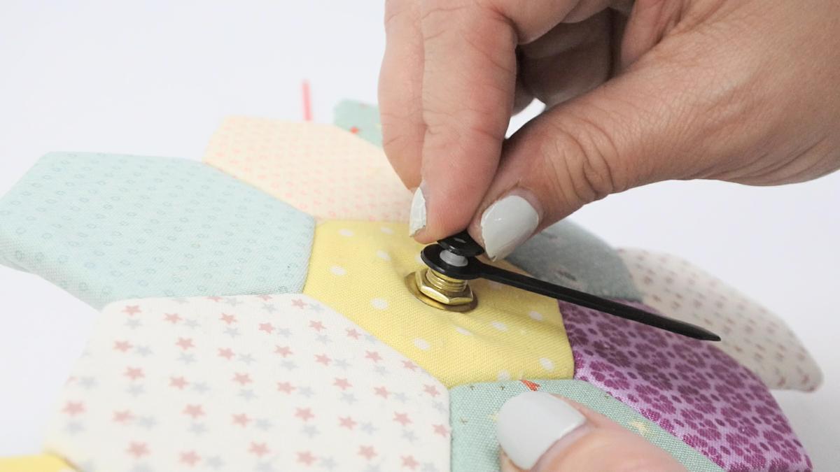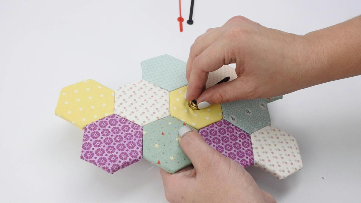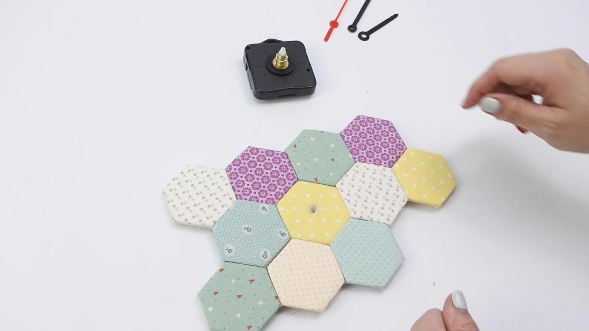Una vez hemos decidido la forma de nuestro reloj, comenzamos a unir las piezas entre sí por la tarde de atrás con la grapadora.