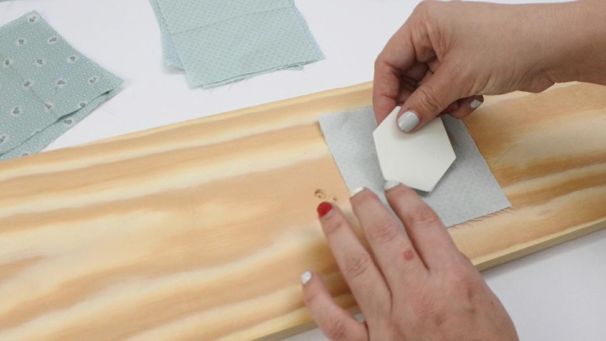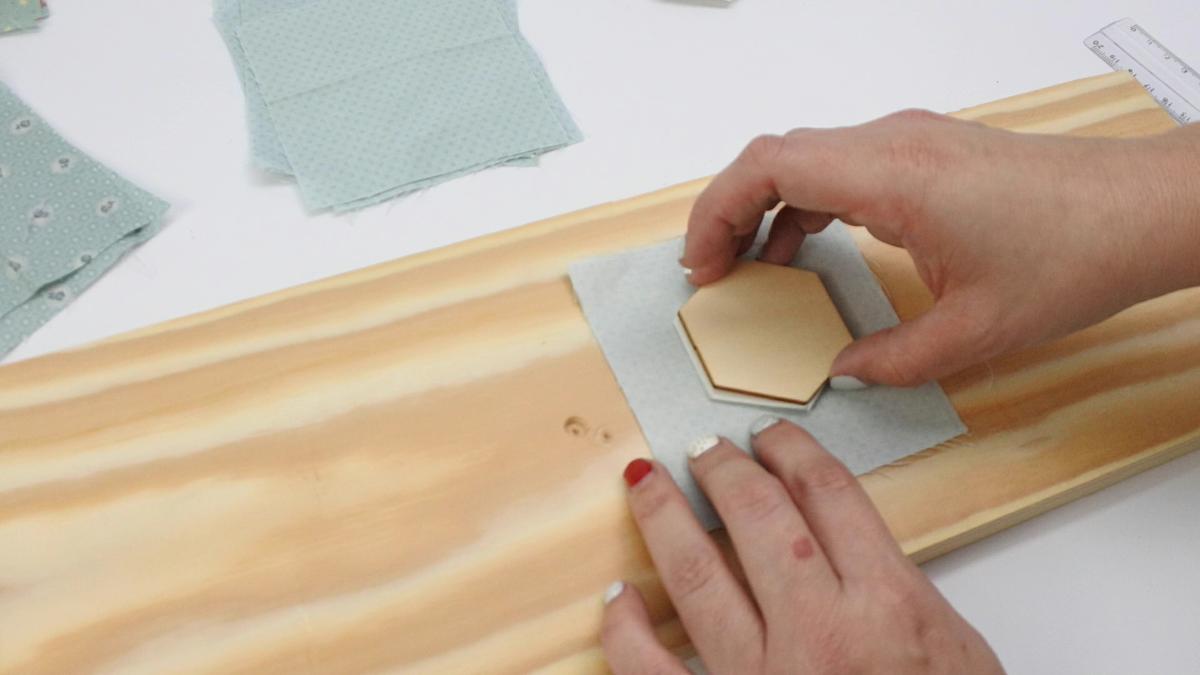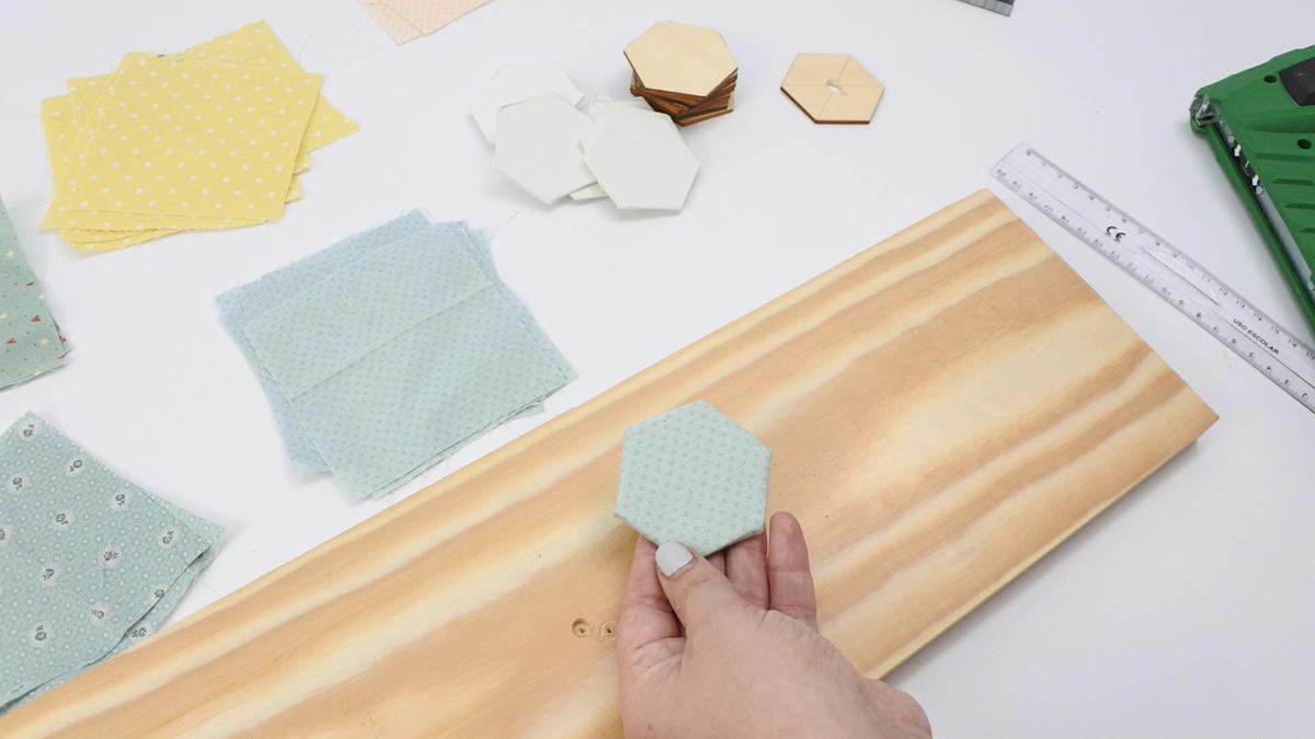 Tal y como se ve en las fotos, colocaremos primero la tela, después la gomaeva y por último la madera para comenzar de este modo a forrarlas.