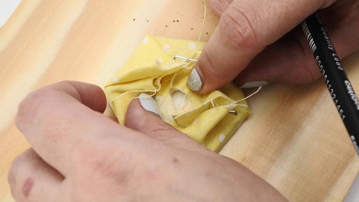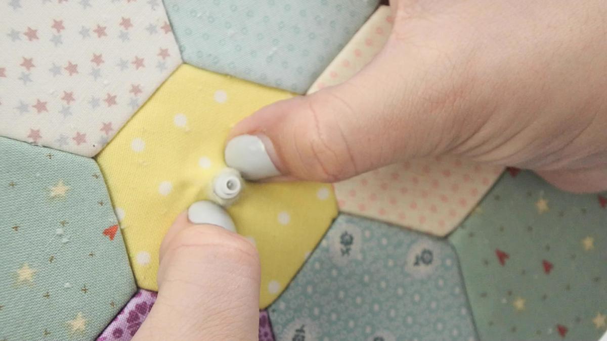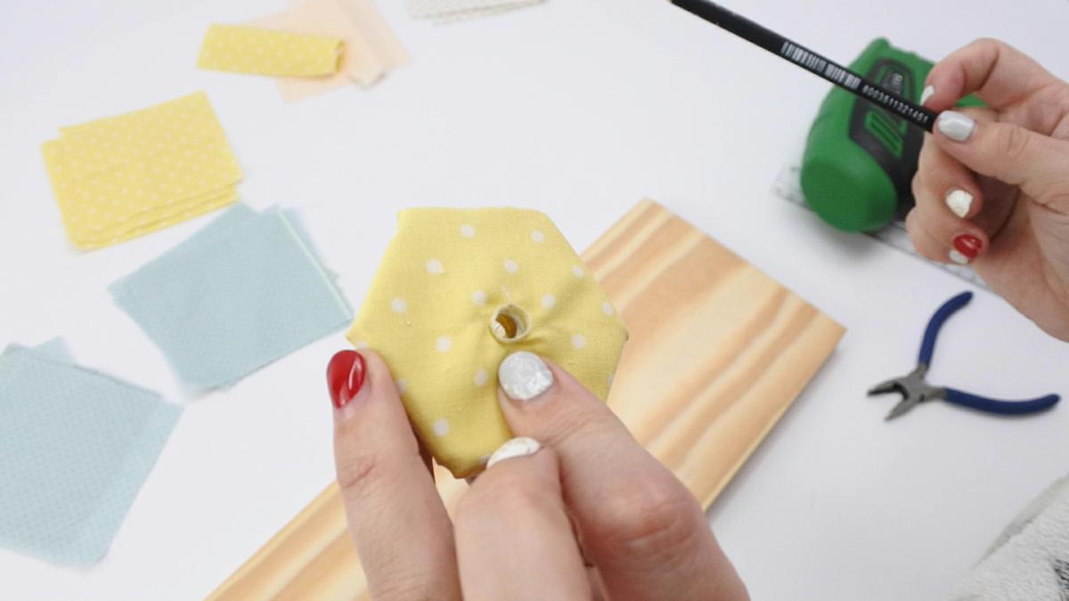 En el caso de esta pieza, al tener el agujero, debemos abrirlo también en la tela y la goma, para ello nos ayudamos con un lápiz.