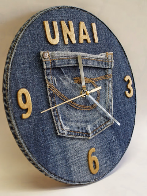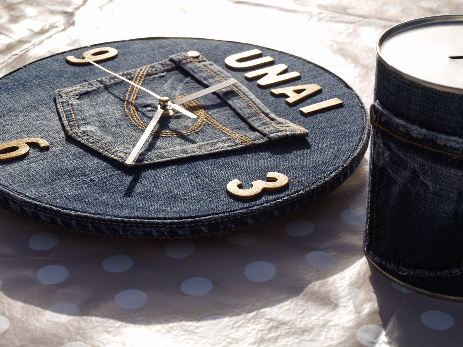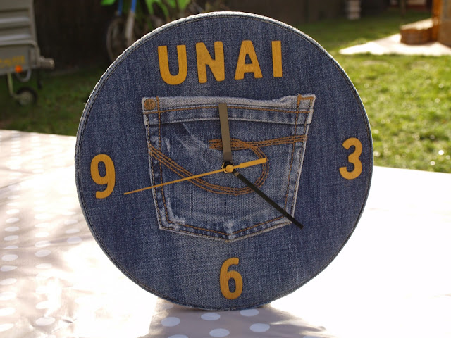 DIY Reloj y hucha para Unai, reciclando vaqueros.