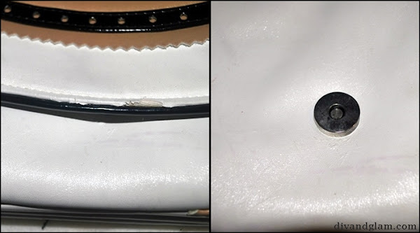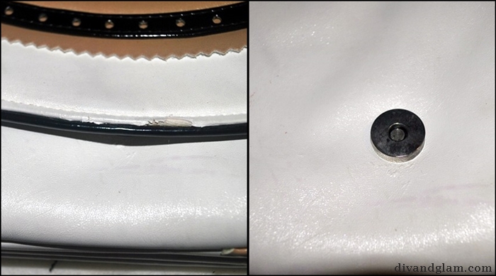 En las imágenes te muestro los desperfectos que tiene el bolso. En los bordes de la tapa está levantado el cuero y en la zona del cierre está abombado el cuero y apunto de levantarse.