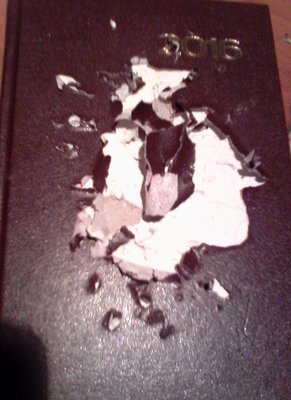 Pues mis gatos, que son adorables, también tienen malos momentos y el otro día, en un descuido, se dedicaron a afilar las uñas en la portada de mi agenda del blog. Y no en una, no, en la de este año y en la del pasado, que me gusta conservar para hacer alguna comprobación.
