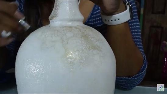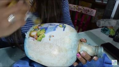 BOTELLA CRAQUELADA CON DECOUPAGE