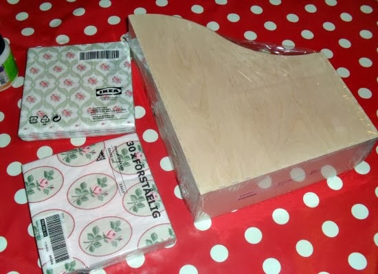Pero claro, al seguir avanzando por los largos pasillos vi estos revisteros de madera, los KNUFF, y se me ocurrió que usando las servilletas quedarían monísimos para guardar revistas, libros de labores, en cualquier lugar. Así que ¡a la bolsa amarilla!