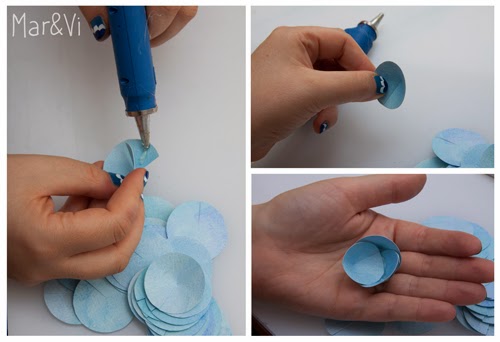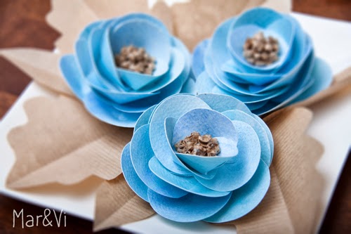 He visto el tutorial de estas flores en Wedding Chicks, pero lo he modificado un poco.