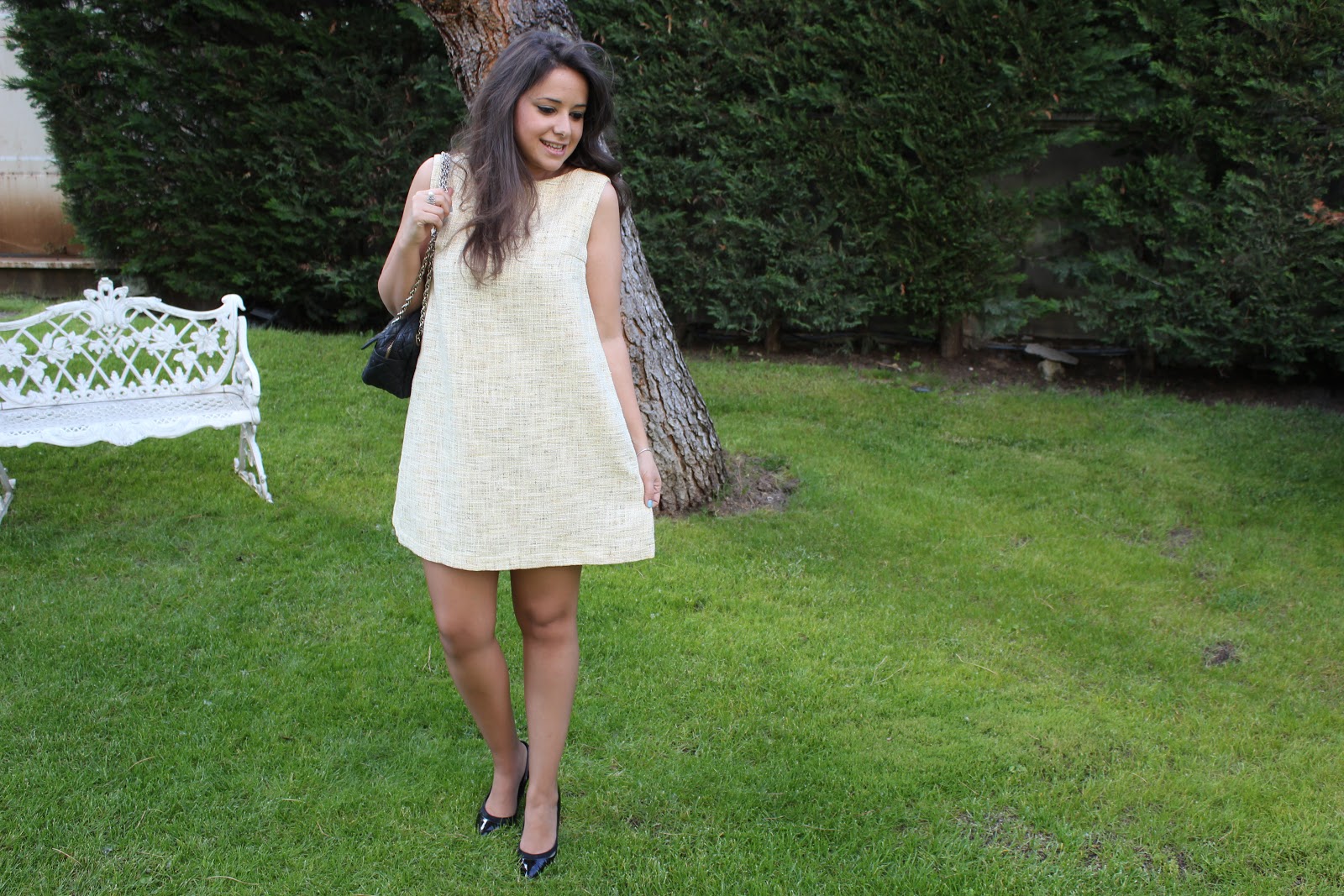 El segundo vestido de esta colección de vestidos de cocktail, es este vestido de corte sencillo en color amarillo e inspirado en Chanel. Es muy sencillo de realizar, pero tiene truco para la terminación de las mangas y el cuello!!!! No os perdáis el vídeo tutorial :D