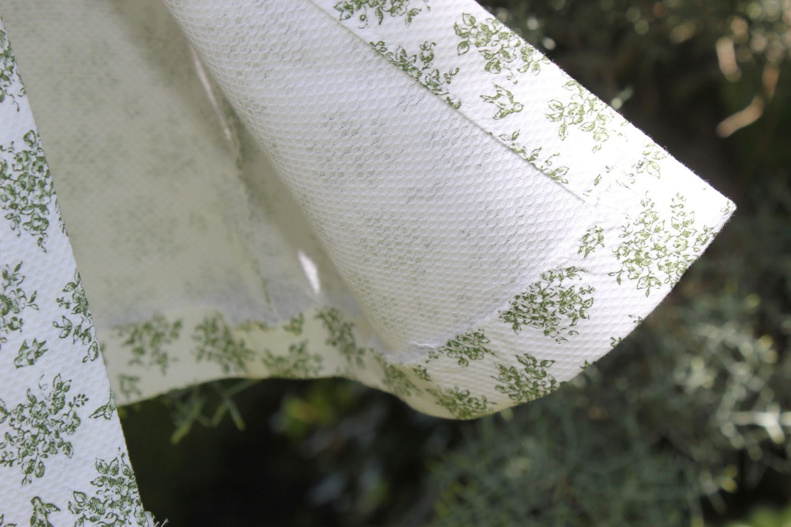 La tela que hemos utilizado es como casi siempre PIQUÉ. ¿Por qué piqué casi siempre? Es un típico de la ropa de bebé, y yo la recomiendo 100%. Uno de los motivos principales es que está diseñada para los más pequeños, y la podéis encontrar en todos los tonos pastel inimaginables y con los estampados infantiles más bonitos. Además, esta tela, al ser un poco fuerte, hace ese efecto globo en el faldón del vestido, o en la ranita. Es muy fácil de coser y de manejar en costura, porque no se mueve mucho y tampoco se deshilacha rápidamente.