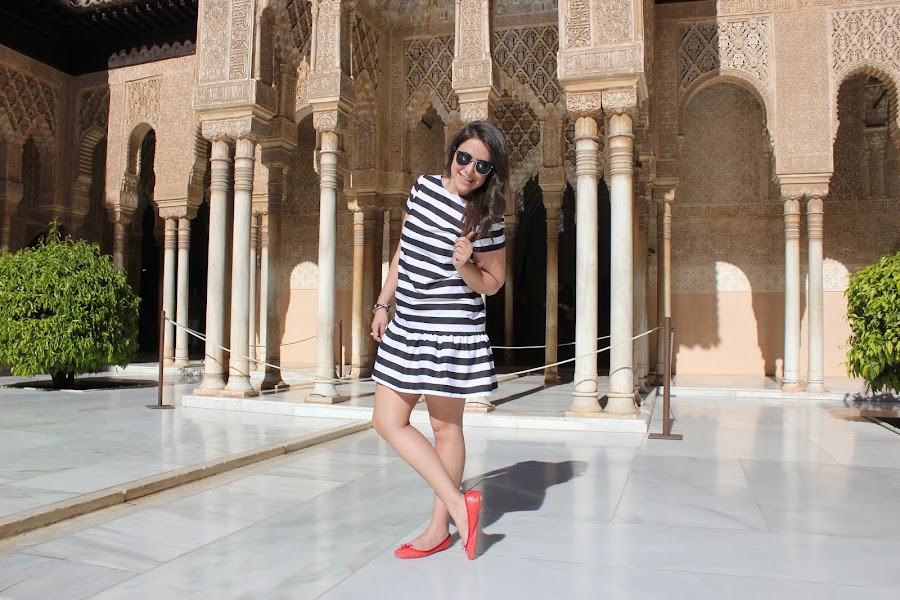 Buenaaasss!!!! Con este calor sólo apetece agua, refrescos, helados y ropa fresquita... Pero aquí os traigo un ejemplo de que la ropa fresquita y cómoda no tiene por qué ser sólo una camiseta y unos shorts o un vestido playero :D Hoy he reciclado este vestido de rayas que publicamos a principios de verano (podéis ver el post aquí). Tengo que deciros que me lo he puesto infinitas veces, pero es que me encanta. Cuando estoy derretida de calor, me doy una ducha, me pongo este vestido y estoy lista para salir en 2 minutos, además de estar muy cómoda y fresquita y bien arreglada, ¿quién dijo que hacen falta horas para arreglarse?