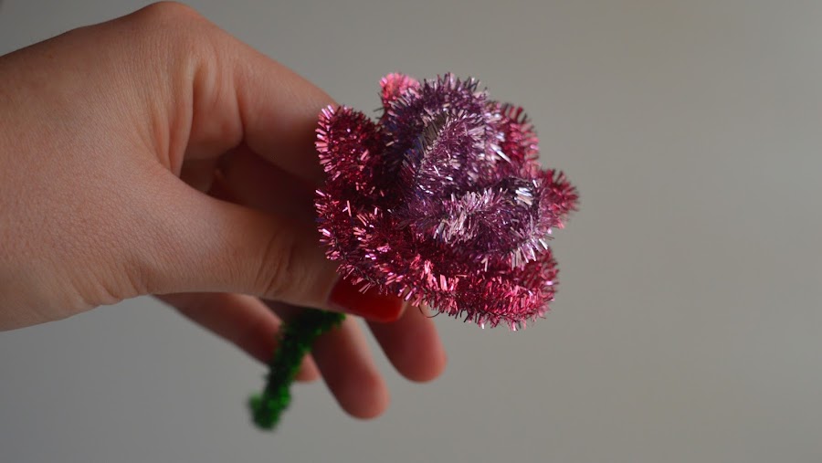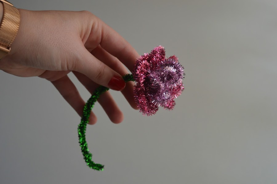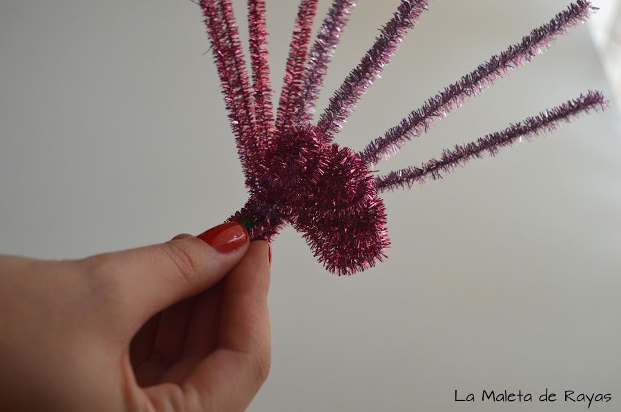 Con un limpiapipas verde le podéis incluir una hoja al tallo, hacerla con limpiapipas que sean mates y no brillantes... esto es solo la idea y el proceso, pero a partir de aquí podéis hacerla a vuestro gusto.