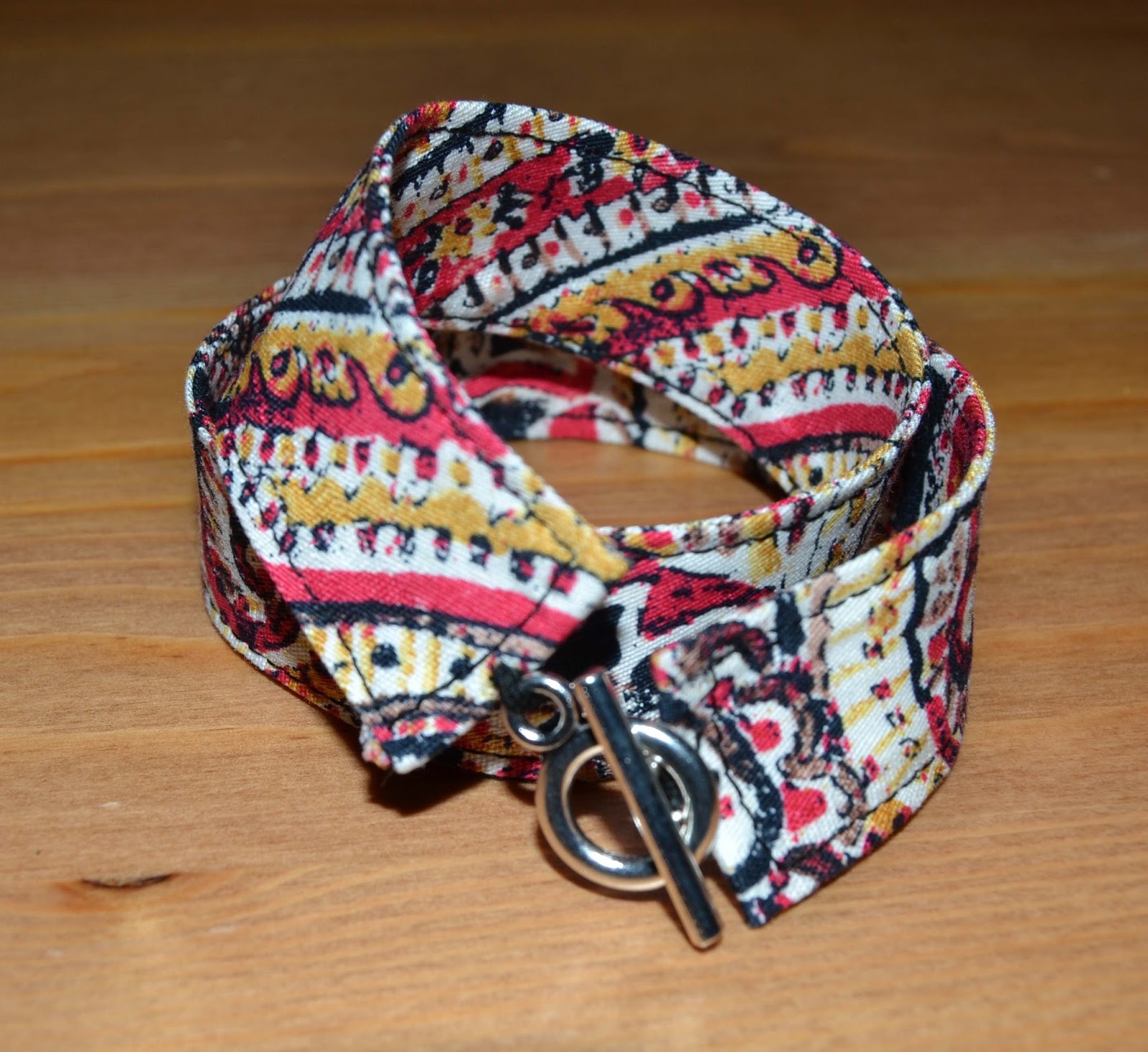 En julio cosí una pulsera similar que podéis ver aquí, pero esta vez no he utilizado cinta al bies sino una tela que compre hace muchos meses en un mercadillo y no he encontrado el momento para coser nada con ella, a ver si sacándola del cajón me animo... y encuentro la inspiración... Que perdí, ya que sino recuerdo mal era para un vestido....