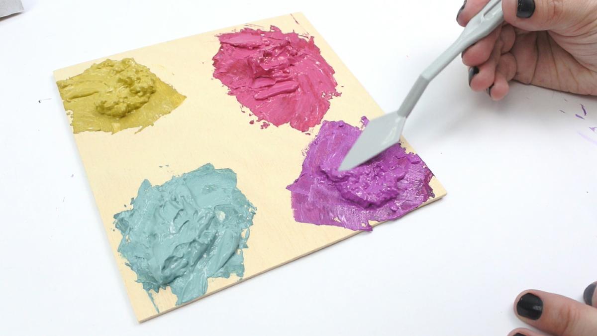 Realizar la mezcla es muy sencillo. Tan solo tenemos que aplicar una pequeña cantidad de gesso y mezclar con la misma cantidad de la pintura que hayamos elegido.