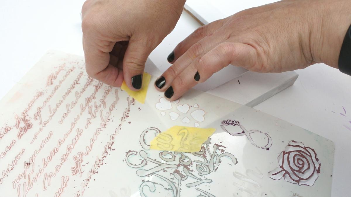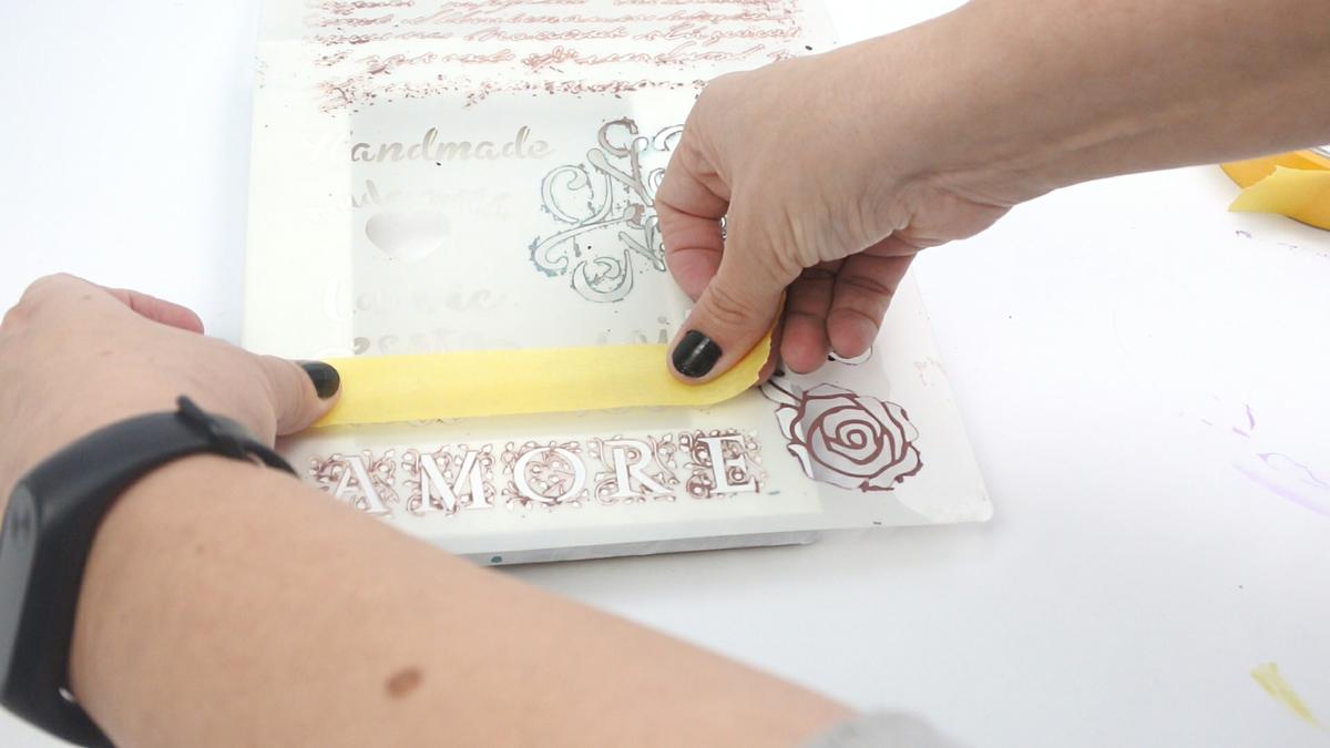 Un consejo: A pesar de pegar el stencil, os recomiendo que también lo fijéis con un poco de cinta de papel al mismo tiempo que también es recomendable tapar los dibujos cercanos al seleccionado para que no pueda entrar pintura.