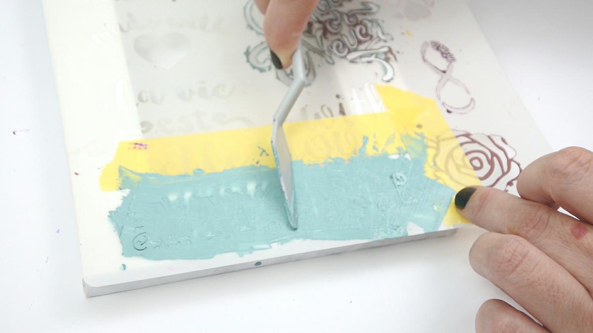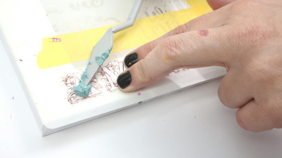 La extendemos bien por toda la imagen, y una vez está bien repartida, podemos retirar el stencil.