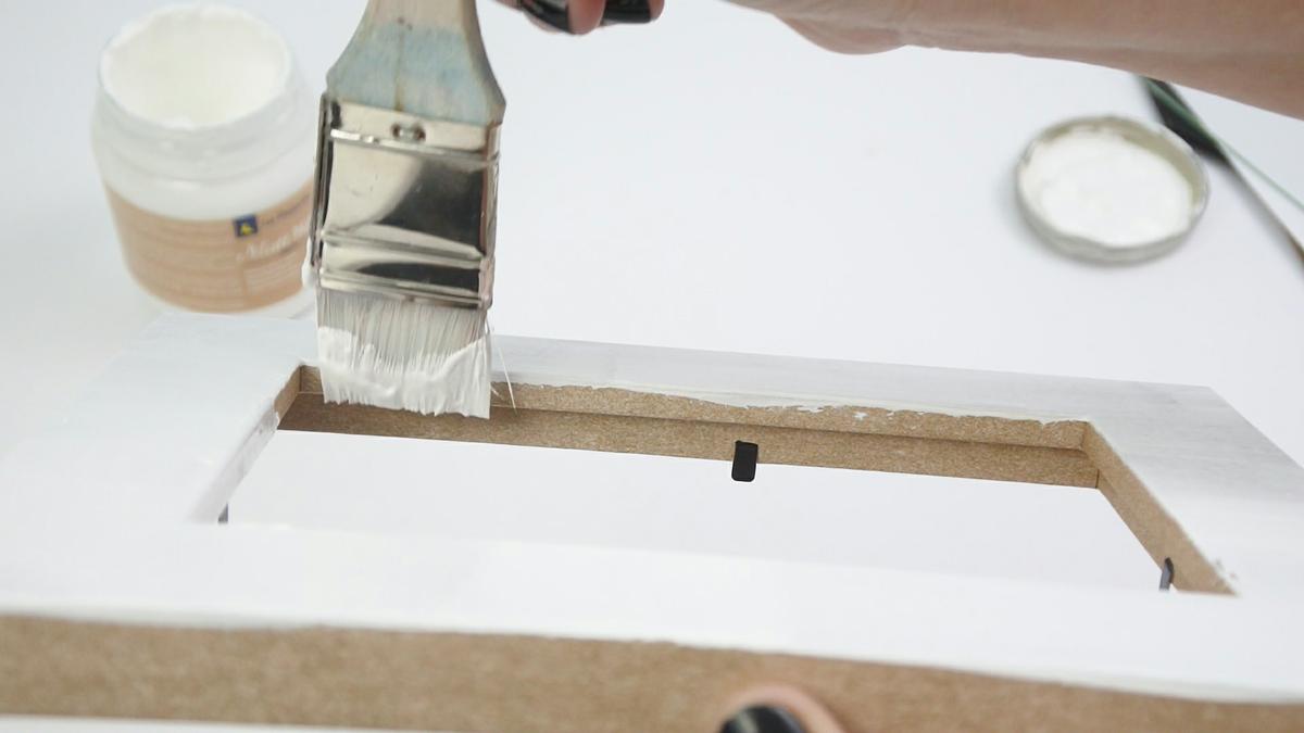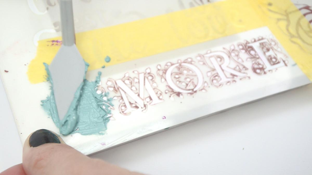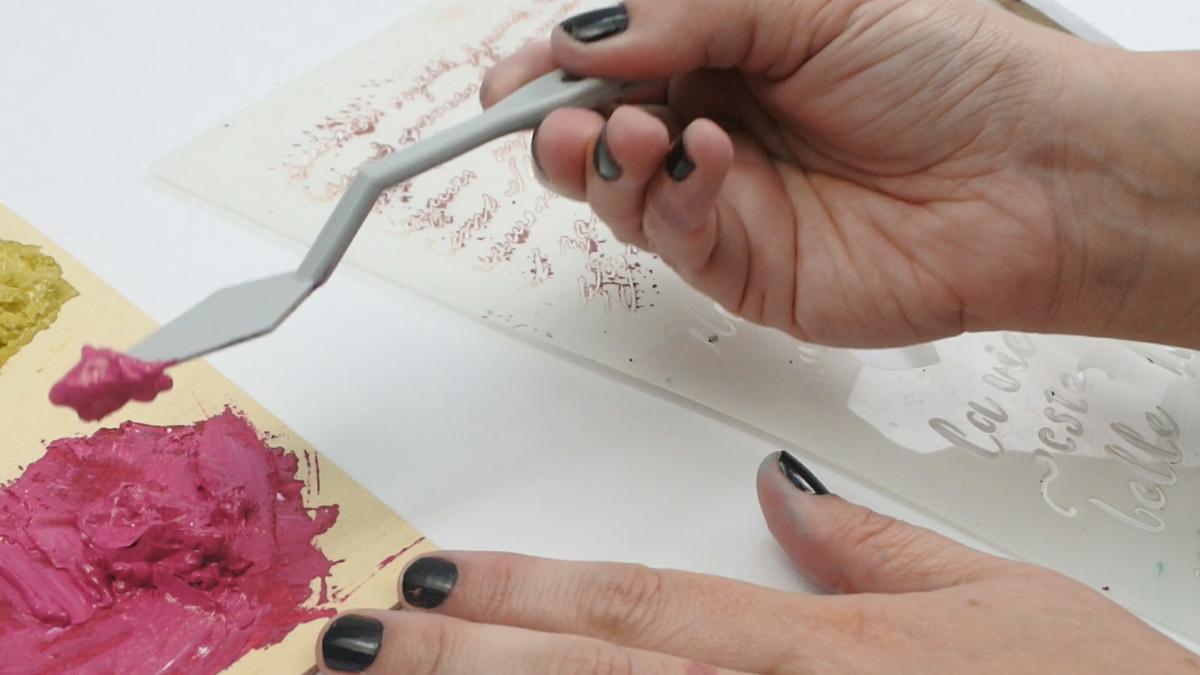La pintura Matt tiene un tiempo de secado muy rápido (similar a la chalk) por lo que mientras que se seca, podemos ir comenzando a hacer la mezcla de gesso con los colores que hemos elegido para los detalles con el stencil.