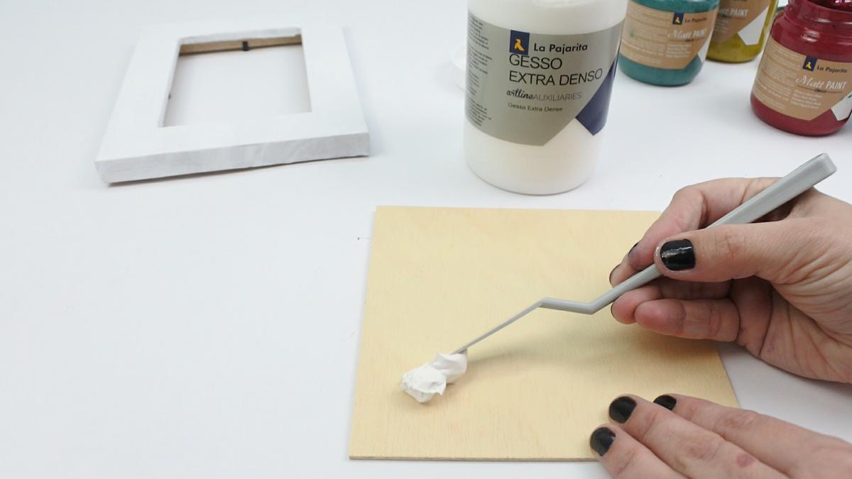 Efectivamente, la base de nuestra pasta 3D es gesso extradenso también de Pinturas La Pajarita. Nos da el acabado de la pasta 3D y lo bueno es que lo podemos mezclar con cualquier pintura al agua para darle el color que deseemos.